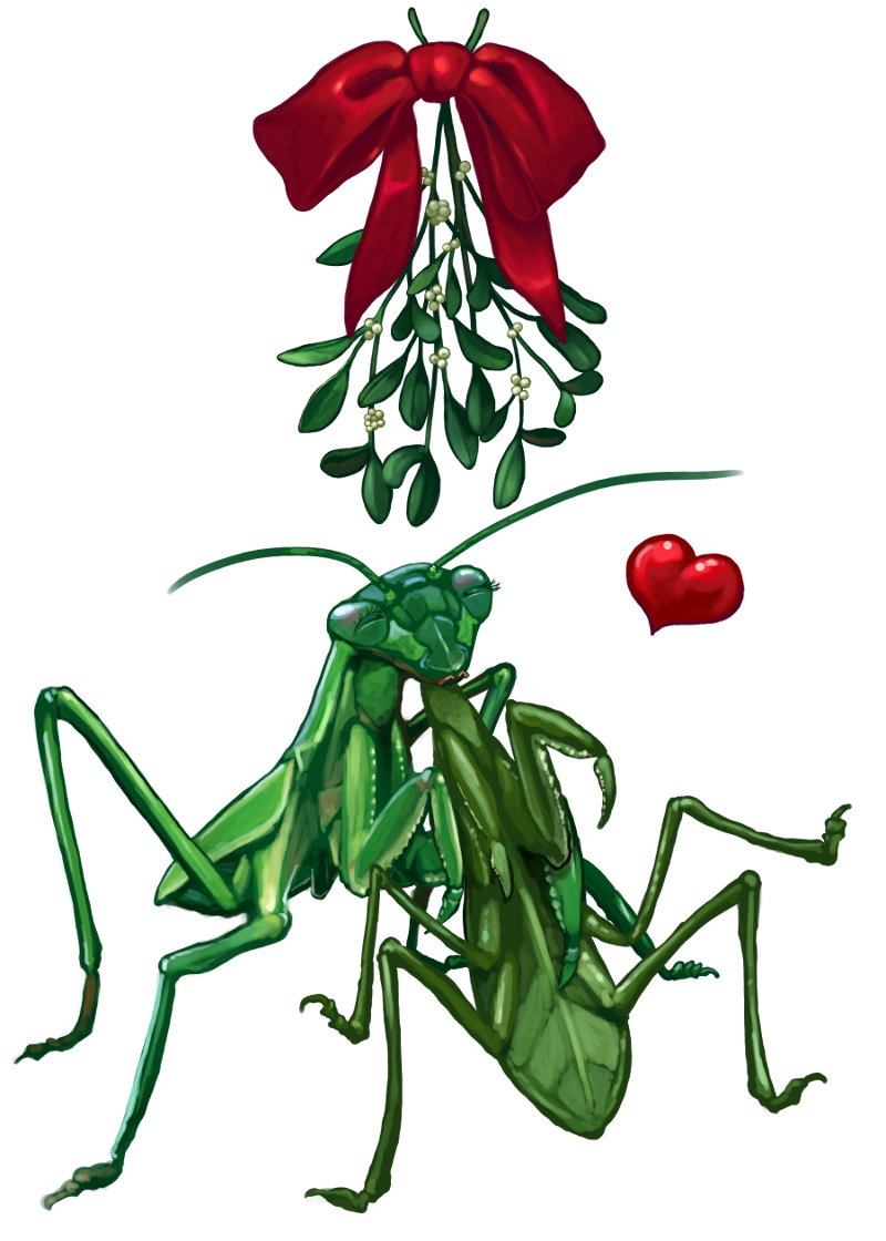 praying mantises under the mistletoe
