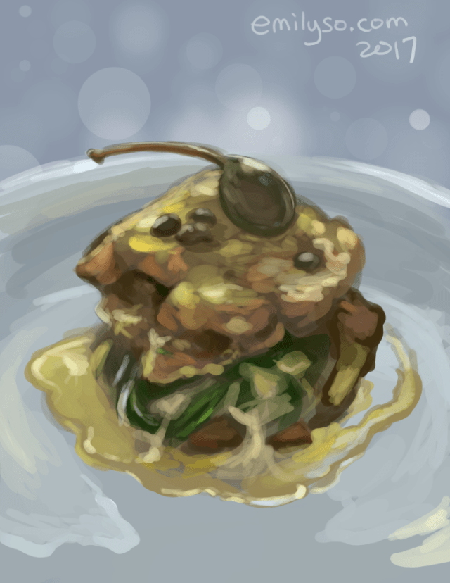 (^My attempt at a quick scribble of a photo of Seitan Piccata ^ because I don’t want to directly rip other people’s photos) 😛