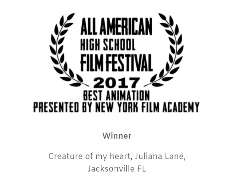 I want to give my most elated congratulations to Juliana for winning Best Animation at the All American High School Film Festival!