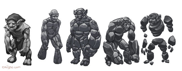 For one of them, I illustrated some concept work of elemental golems.